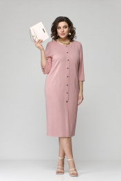 Платье полуприлегающего силуэта, втачного покроя. Рукава 3/4 с имитацией шлицы фиксирующейся на петли-пуговицы. Модель выполнена из трикотажного полотна плательной группы. По переду расположена складка-планка по центру с петлями и пуговицами. Пуговицы металлические с эффектом золота. Нагрудные вытачки, идущие из бокового шва, расположены по переду изделия. Горловина округлой формы. Спинка со средним швом, в котором сверху расположена молния, по низу – разрез. Платье длиной до середины икры, что делает модель элегантной и стильной. Ширина изделия по груди: 48р – 50,5см, 50р – 52,5см, 52р – 54,5см Ширина по линии талии: 48р – 47см, 50р – 49см, 52р – 51см Ширина по линии бедер: 48р – 53см, 50р – 55см, 52р – 57см Ширина спинки: 48р – 39см, 50р – 39см, 52р – 39см Длина по среднему шву спинки: 48р – 111см, 50р – 111см, 52р – 111см Ширина плеча: 48р – 9,5см, 50р – 9,5см, 52р – 9,5см Ширина рукава под проймой: 48р – 18см, 50р – 19см, 52р – 20см Длина рукава: 50р – 46см, 52р – 46см, 54р – 46см