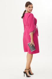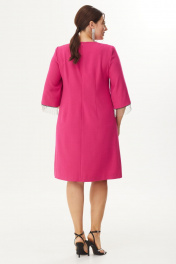 Платье, расширенное к низу, «А»-образного силуэта, втачного покроя. Рукав ¾, с закругленным по низу передним швом, с использованием металлической бахромы по этим швам. Горловина округлой формы. По переду расположены нагрудные вытачки, идущие из боковых швов. Спинка со средним швом, в котором «тесьма-молния», вертикальные талевые вытачки. Ширина изделия на уровне глубины: 52р – 54см, 54р – 56см, 56р – 58см, 58р – 60см, 60р – 62см, 62р – 64см. Ширина по линии талии: 52р – 51,5см, 54р – 53,5см, 56р – 55,5см, 58р – 58см, 60р – 60см, 62р – 62см. Ширина по линии бедер: 52р – 59см, 54р – 60см, 56р – 62см, 58р – 64см, 60р – 66см, 62р – 68см. Длина по среднему шву спинки: 52р – 98см, 54р – 98см, 56р – 98см, 58р – 103см, 60р – 103см, 62р – 103см. Ширина спинки: 52р – 40,5см, 54р – 40,5см, 56р – 40,5см, 58р – 44см, 60р – 44см, 62р – 44см. Ширина плеча: 52р – 9,5см, 54р – 9,5см, 56р – 9,5см, 58р – 10,5см, 60р – 10,5см, 62р – 10,5см. Ширина рукава под проймой: 52р – 20см, 54р – 21см, 56р – 22см, 58р – 22см, 60р – 23см, 62р – 24см. Длина рукава: 52р – 45см, 54р – 45см, 56р – 45см, 58р – 45см, 60р – 45см, 62р – 45см.