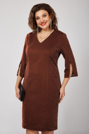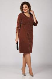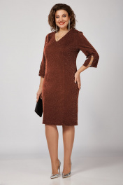 Платье коричневое трикотажное с люрексом в нарядном стиле Орхидея 1370-1 терракот
