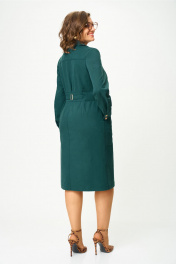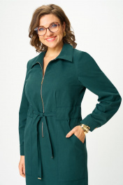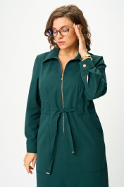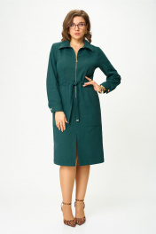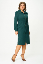 Платье женское, полуприлегающего силуэта, втачного покроя рукава, выполнено из джинсовой ткани. По центру переда вставлена отделочная молния, внизу разрез. Перед отрезной по линии талии, в нижней части с накладными карманами, сверху с нагрудной вытачкой снизу вверх. Спинка так же отрезная по линии талии, нижняя часть со средним швом и талиевыми вытачками, верхняя часть со встречной складкой на уровне талии и кокеткой. На уровне талии настрачивается деталь, через которую на спинке протягивается пояс с пряжкой, по переду пояс завязывается по центру. Рукав длинный, двухшовный, внизу с манжетой, застегивающейся на петлю-пуговицу. Ширина изделия на уровне глубины: 48р – 51см, 50р – 53см, 52р – 55см, 54р – 57см, 56р – 59см, 58р – 61см; Ширина по линии талии:48р – 45см, 50р – 47см, 52р – 49см, 54р – 51см, 56р – 53см, 58р – 55см; Ширина по линии бедер: 48р – 53см, 50р – 55см, 52р – 57см, 54р – 59см, 56р – 61см, 58р – 62см; Длина по среднему шву спинки: 48-52р – 108см, 54-58р – 110см; Ширина спинки: 48-52р – 40см, 54-58р – 42см; Ширина плеча: 48-52р – 13см, 54-58р – 14см; Ширина рукава под проймой: 48р – 18,5см, 50р – 19,5см, 52р – 20,5см, 54р – 21см, 56р – 22см, 58р – 23см; Длина рукава (с манжетой): 48-58р – 62см.