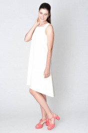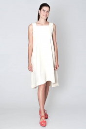 Платье-сарафан на подкладке с прямоугольным вырезом и широкими бретелями А-силуэта, ассиметричный низ.