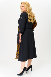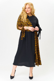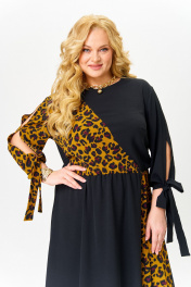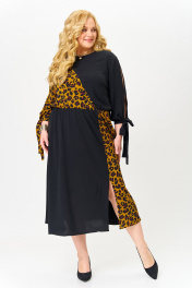 Элегантное нарядное платье с ассиметричным решением кроя сядет на любую фигуру и подчеркнет индивидуальность и женственность. Простые линии придадут изысканность и лаконичность. Перед платья с отрезным лифом и нижней частью. Юбка платья с кокетливым разрезом. Полочка и низ платья выполнены из контрастных тканей. Круглая горловина. Рукав ¾ с разрезами, с завязками на манжете. Такое платье достойно станет базовым элементом дамского гардероба. Наряд можно носить и в офис, и на прогулку, и в ресторан или встречу с друзьями. Благодаря легкой стрейчевой ткани сядет на любую фигуру. Длина платья универсальная, поэтому его могут носить девушки и дамы любого возраста. Такое платье призвано подчеркнуть природную женскую красоту и грацию, а также безупречный вкус его обладательницы.