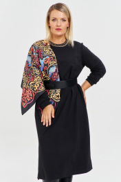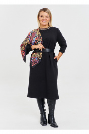 Платье прямое свободного кроя из премиум трикотажа. Платье с длинным полноразмерным рукавом с манжетом, с округлой горловиной, в боковых швах карманы и разрезы. В комплекте к платью идет дизайнерское украшение на шею из золотой цепи и черной бархатной ленты. Такое базовое платье - воплощение свободы движения, естественности уникальности каждой женщины. Оно отлично сидит на любом типе фигуры. Свободное современное трикотажное платье больших размеров можно легко стилизовать при помощи аксессуаров для разных событий, на работу и для прогулок. Модное платье без надписи и рисунка - это отличная базовая вещь в вашем гардеробе.