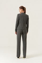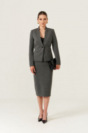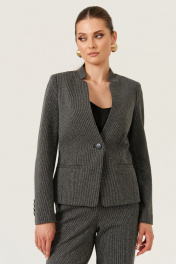 Жакет женский из смесового трикотажного полотна для повседневной носки. Жакет полуприлегающего силуэта. Застежка центральная бортовая на одну обметанную петлю и одну пуговицу. Перед имеет две талиевые вытачки и рельефы, идущие от проймы до линии низа изделия, а также на переде располагается два прорезных кармана с листочкой. Спинка со средним швом и четырьмя рельефами. Рельефы, идущие от плечевого шва и от проймы до низа изделия. Горловина V-образная, обработана воротником стойкой. Рукава втачные длинные. По низу рукава имеется декоративная шлица на обметанные петли и пуговицы. Жакет имеет поливискозную подкладку по переду. Очень стильный жакет, который обязательно не оставит никого равнодушным. В нем вы сможете чувствовать себя модной, а главное очень красивой. 46 Жакет: Длина изделия - 56.5см, Длина рукава - 62см, Ширина плеча - 10.5см, Ширина по груди - 50см, Ширина по низу - 53см, Ширина рукава - 18.2см; 48 Жакет: Длина изделия - 57см, Длина рукава - 62см, Ширина плеча - 10.7см, Ширина по груди - 52см, Ширина по низу - 55см, Ширина рукава - 19см; 50 Жакет: Длина изделия - 57.5см, Длина рукава - 62см, Ширина плеча - 10.7см, Ширина по груди - 54см, Ширина по низу - 57см, Ширина рукава - 19.7см; 52 Жакет: Длина изделия - 58.5см, Длина рукава - 62см, Ширина плеча - 11см, Ширина по груди - 56см, Ширина по низу - 59см, Ширина рукава - 20.5см; 54 Жакет: Длина изделия - 59см, Длина рукава - 62см, Ширина плеча - 11см, Ширина по груди - 58см, Ширина по низу - 61см, Ширина рукава - 21.2см;