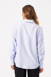 Эта стильная женская блузка голубого оттенка идеально подойдет для повседневной носки. Выполненная в прямом силуэте, она обеспечивает комфорт и свободу движений. Ткань поливискозная, струящаяся, что придает изделию легкость и изящность. Перед украшен центральной бортовой застежкой на обметанные петли и пуговицы, а низ изделия выполнен с закругленным краем, добавляя изящества образу. Горловина оформлена классическим рубашечным воротником, а рукава завершены притачными манжетами с застежками на две обметанные петли и пуговицы — практично и стильно. Эта очень легкая и практичная блузка станет отличным выбором для ежедневных образов, сочетая комфорт с элегантностью и привлекательностью. 54 Блузка: Длина изделия - 72см, Длина рукава - 58см, Обхват шеи - 47см, Ширина плеча - 14,7см, Ширина по груди - 59см, Ширина по низу - 64см, Ширина рукава - 22,5см;