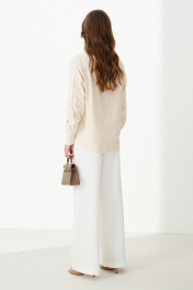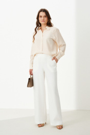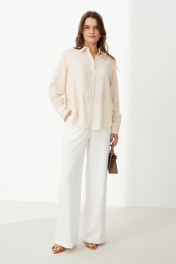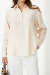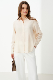 Эта стильная женская блузка светло-бежевого оттенка идеально подойдет для повседневной носки. Выполненная в прямом силуэте, она обеспечивает комфорт и свободу движений. Ткань поливискозная, струящаяся, что придает изделию легкость и изящность. Перед украшен центральной бортовой застежкой на обметанные петли и пуговицы, а низ изделия выполнен с закругленным краем, добавляя изящества образу. Горловина оформлена классическим рубашечным воротником, а рукава завершены притачными манжетами с застежками на две обметанные петли и пуговицы — практично и стильно. Эта очень легкая и практичная блузка станет отличным выбором для ежедневных образов, сочетая комфорт с элегантностью и привлекательностью. 44 Блузка: Длина изделия - 72см, Длина рукава - 58см, Обхват шеи - 47.5см, Ширина плеча - 15см, Ширина по груди - 61см, Ширина по низу - 66см, Ширина рукава - 23.2см; 46 Блузка: Длина изделия - 72см, Длина рукава - 58см, Обхват шеи - 48см, Ширина плеча - 15см, Ширина по груди - 63см, Ширина по низу - 68см, Ширина рукава - 24см; 48 Блузка: Длина изделия - 72.5см, Длина рукава - 58см, Обхват шеи - 48.5см, Ширина плеча - 15.2см, Ширина по груди - 65см, Ширина по низу - 70см, Ширина рукава - 24.8см; 50 Блузка: Длина изделия - 72.5см, Длина рукава - 58см, Обхват шеи - 49.5см, Ширина плеча - 15.2см, Ширина по груди - 67см, Ширина по низу - 72см, Ширина рукава - 25.5см; 52 Блузка: Длина изделия - 72.5см, Длина рукава - 58см, Обхват шеи - 50.5см, Ширина плеча - 15.5см, Ширина по груди - 69см, Ширина по низу - 74см, Ширина рукава - 26.2см; 54 Блузка: Длина изделия - 72.5см, Длина рукава - 58см, Обхват шеи - 51см, Ширина плеча - 15.8см, Ширина по груди - 71см, Ширина по низу - 76см, Ширина рукава - 27см;