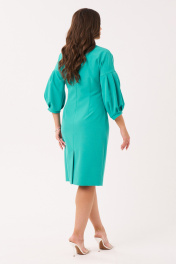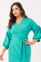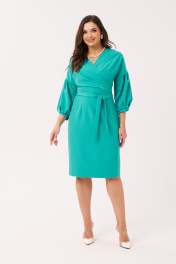 Это элегантное женское платье бирюзового оттенка, выполненное из смесовой ткани, идеально подходит для повседневной носки. Платье на запах с изящными складками создает легкий и романтичный образ, подчеркивая женственность и комфорт. Свободный силуэт платья обеспечивает удобство и свободу движений. V-образный вырез на запах визуально удлиняет шею и добавляет изысканности. Отрезной пояс по линии талии подчеркивает фигуру, а дополнительно притаченный пояс позволяет регулировать посадку. Спинка со средним швом и двумя талиевыми вытачками для лучшей посадки. В среднем шве спинки расположена потайная застежка-молния для удобства надевания. Шлица в среднем шве спинки добавляет свободы движений и стильный акцент. Рукава втачные со спущенным плечом, создающие расслабленный вид. Низ рукава со складками обработан притачной манжетой для аккуратного завершения. Это платье станет отличным выбором для повседневной носки — его можно легко сочетать с различными аксессуарами и обувью. Легкость ткани обеспечивает комфорт в течение всего дня, а стильный дизайн позволяет выглядеть элегантно в любой ситуации. Платье подчеркнет индивидуальность и вкус современной женщины, делая ее образ ярким и запоминающимся. 46 Платье: Длина изделия по спинке - 102см, Ширина плеча - 25см, Ширина по бедрам - 53см, Ширина по груди - 50см, Ширина по талии - 41,5см, Ширина рукава внизу - 14,5см; 50 Платье: Длина изделия по спинке - 102см, Ширина плеча - 27см, Ширина по бедрам - 57см, Ширина по груди - 54см, Ширина по талии - 45,5см, Ширина рукава внизу - 15,5см; 52 Платье: Длина изделия по спинке - 102см, Ширина плеча - 27,5см, Ширина по бедрам - 58см, Ширина по груди - 56см, Ширина по талии - 47,5см, Ширина рукава внизу - 16см; 54 Платье: Длина изделия по спинке - 102см, Ширина плеча - 28см, Ширина по бедрам - 60см, Ширина по груди - 58см, Ширина по талии - 49,5см, Ширина рукава внизу - 16,5см;