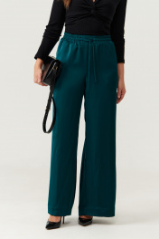 Брюки женские прямые из струящейся атласной ткани. Верхний срез брюк обработан притачным поясом, Пояс на резинке, по переду имеется отрезная прямая часть. В пояс вставлены завязки, за счет чего вы сможете регулировать облегание в области талии. На концах шнурков металлические наконечники. В брюках в боковом шве имеются потайные боковые карманы, что очень удобно. Брюки для повседневной носки либо для торжественных случаев. Модные и очень практичные брюки в изумрудном цвете станут базовой вещью в вашем гардеробе. 44 Брюки: Высота посадки - 30.5см, Длина брюк с поясом - 113см, Длина по внутреннему шву - 82.5см, Ширина брючин сверху - 70см, Обхват брюк по низу - 66см, Ширина по бедрам - 58см, Ширина по талии - 33см; 46 Брюки: Высота посадки - 31см, Длина брюк с поясом - 113см, Длина по внутреннему шву - 82.5см, Ширина брючин сверху - 72см, Обхват брюк по низу - 67см, Ширина по бедрам - 60см, Ширина по талии - 35см; 48 Брюки: Высота посадки - 31.5см, Длина брюк с поясом - 113см, Длина по внутреннему шву - 82.5см, Ширина брючин сверху - 74см, Обхват брюк по низу - 68см, Ширина по бедрам - 62см, Ширина по талии - 37см;