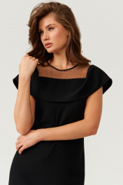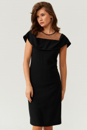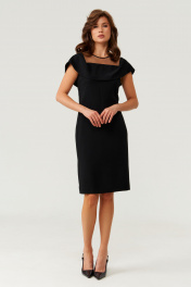 Платье женское из струящейся ткани. Платье прямого силуэта. Перед имеет две нагрудные вытачки. Спинка со средним швом и двумя талиевыми вытачками, в среднем шве располагается потайная застежка-молния и застежка в виде капельки на петлю и пуговицу. В среднем шве имеется шлица к низу изделия. Горловина с воланом создавая имитацию отворота, а также горловина обработана сеткой. Рукава кроткие. Платье на поливискозной подкладке. Платье длиной миди. Стильное платье черного оттенка станет не заменимой вещью в вашем гардеробе, данное платье подойдёт как для повседневной, так и для т торжественной носки. Платье придаст вам изящный и чарующий вид, в нем вы точно вскружите всем голову. 44 Платье: Длина изделия по спинке - 101см, Ширина плеча - 7.5см, Ширина по бедрам - 50см, Ширина по груди - 44см, Ширина по талии - 40см; 46 Платье: Длина изделия по спинке - 101см, Ширина плеча - 7.5см, Ширина по бедрам - 52см, Ширина по груди - 46см, Ширина по талии - 42см; 50 Платье: Длина изделия по спинке - 102см, Ширина плеча - 7.5см, Ширина по бедрам - 56см, Ширина по груди - 50см, Ширина по талии - 46см; 52 Платье: Длина изделия по спинке - 103см, Ширина плеча - 7.5см, Ширина по бедрам - 58см, Ширина по груди - 52см, Ширина по талии - 48см;