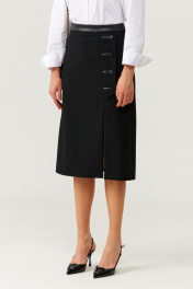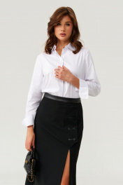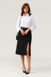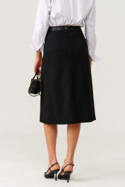 Женская юбка прямого силуэта из поливискозной ткани, идеально подходящая для повседневной носки. Верхний срез юбки оформлен притачным поясом с кожаной вставкой, внутренний край которого обработан декоративной тесьмой. Застежка выполнена в задней части пояса на одну обметанную петлю и одну пуговицу, дополнена тесьмой-молнией в среднем шве для удобства и надежности. Переднее полотнище украшено декоративной шлицей с застежкой на обметанные петли и пуговицы в рамку с кожаными вставками, а также имеет вырез вдоль шлицы, что добавляет образу изящества и оригинальности. Задняя часть юбки украшена четырьмя талиевыми вытачками и средним швом, что обеспечивает аккуратный и элегантный силуэт. Юбка полностью на поливискозной подкладке, что делает ее более удобной и приятной к телу. Этот стильный и практичный вариант юбки черного оттенка отлично подойдет для создания повседневных образов с нотками изящества и современного стиля. 44 Юбка: Длина изделия - 73см, Ширина по бедрам - 49см, Ширина по низу - 57см, Ширина по талии - 36см; 46 Юбка: Длина изделия - 73см, Ширина по бедрам - 51см, Ширина по низу - 59см, Ширина по талии - 38см; 48 Юбка: Длина изделия - 73см, Ширина по бедрам - 54см, Ширина по низу - 61см, Ширина по талии - 40см; 52 Юбка: Длина изделия - 73см, Ширина по бедрам - 58см, Ширина по низу - 65см, Ширина по талии - 44см;