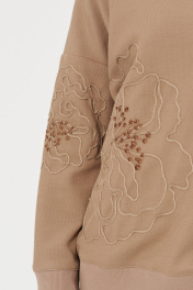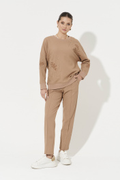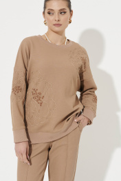 Джемпер женский из смесового трикотажного полотна с добавлением хлопка. Джемпер прямого силуэта для повседневной носки. Джемпер имеет по переду декоративную вышивку шнуром в виде цветов. По низу изделия имеется притачной слегка тянущийся пояс. Спинка прямая, без шва. Линия плеча спущена. Рукава втачные длинные, низ рукава обработан слегка тянущейся притачной манжетой. Горловина обработана притачной слегка тянущейся бейкой. Отличный вариант в прохладное время. Станет замечательным дополнением к вашему образу. 52 54