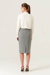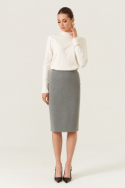 Женская юбка из смесовой ткани для повседневной носки. Полуприлегающий силуэт обеспечивает комфорт и стильный внешний вид. Верхний срез юбки обработан обтачкой, что придает изделию аккуратный и завершенный вид. Заднее полотнище имеет четыре талиевые вытачки для лучшей посадки и формы, а также располагается средний шов с потайной застежкой-молнией обеспечивает удобство при надевании и снятии юбки. На заднем полотнище в среднем шве расположен разрез-шлица, добавляющий свободу движений и стильный акцент. Юбка выполнена на подкладке, что обеспечивает комфорт при носке. Цвет — серый, универсальный и легко сочетаемый с различными топами и обувью. 54 Юбка: Длина изделия - 65см, Ширина по бедрам - 57см, Ширина по низу - 55см, Ширина по талии - 47см;