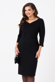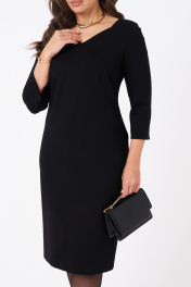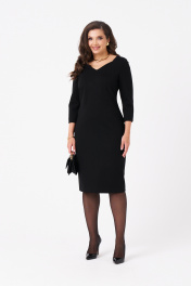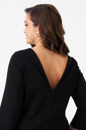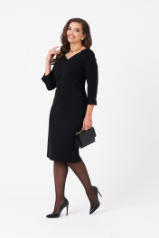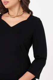 Женское платье из поливискозного трикотажного полотна черного цвета. Модель выполнена в миди-длине с V-образной горловиной по спинке. Перед платья украшен двумя талиевыми вытачками от боковых швов и двумя вытачками создавая вид сердцевидной горловины, что обеспечивает хорошую посадку и подчеркивает талию. Спинка оформлена с отрезной кокеткой и двумя складками для дополнительного объема, а также имеет средний шов с потайной молнией для застегивания. В нижней части спинки расположен разрез по среднему шву, добавляющий удобства при движении. Рукава втачные длиной чуть ниже локтя, по низу рукава по локтевому срезу имеется разрез, что создает комфорт и стильный внешний вид. Это универсальное платье предназначено для повседневной носки либо для различного рода мероприятий сочетает элегантность и практичность. При сочетании с аксессуарами вы получите новый образ. 46 Платье: Длина изделия по спинке - 108см, Длина рукава - 49см, Ширина по бедрам - 53см, Ширина по груди - 50см, Ширина по талии - 45см, Ширина рукава вверху - 17.5см, Ширина рукава внизу - 14см;