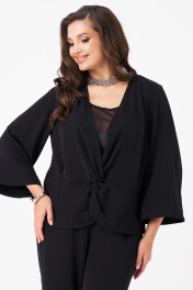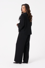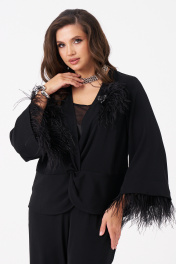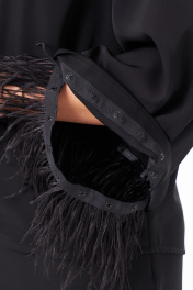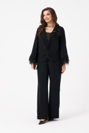 Эта женская блузка выполнена из струящейся ткани, что обеспечивает комфорт и легкость при носке. Модель предназначена для повседневной носки и отличается полуприлегающим силуэтом, подчеркивающим фигуру. Передняя часть украшена подрезом и перекрутом, создающими красивые складки и придающими изделию изящный вид. Рукава втачные длинные, расширяющиеся к низу, украшены декоративной тесьмой с перьями по краю. Перья крепятся на маленькие кнопки и при желании отстёгиваются дл ясоздания нового образа или для стирки блузки. Спинка изделия выполнена со средним швом, что обеспечивает комфортную посадку. Цвет блузки — классический черный, что делает ее универсальной для различных случаев и легко сочетаемой с другими вещами. 48 Блузка: Длина изделия - 65см, Длина рукава - 49см, Ширина плеча - 11.2см, Ширина по груди - 51см, Ширина по низу - 53.5см, Ширина рукава - 20.3см; 50 Блузка: Длина изделия - 65см, Длина рукава - 49см, Ширина плеча - 11.5см, Ширина по груди - 53см, Ширина по низу - 55.5см, Ширина рукава - 21см; 52 Блузка: Длина изделия - 65см, Длина рукава - 49см, Ширина плеча - 11.5см, Ширина по груди - 55см, Ширина по низу - 57.5см, Ширина рукава - 21.5см; 54 Блузка: Длина изделия - 65см, Длина рукава - 49см, Ширина плеча - 11.5см, Ширина по груди - 57см, Ширина по низу - 59.5см, Ширина рукава - 22.2см; 56 Блузка: Длина изделия - 66см, Длина рукава - 49см, Ширина плеча - 11.7см, Ширина по груди - 59см, Ширина по низу - 61.5см, Ширина рукава - 23см; 58 Блузка: Длина изделия - 66см, Длина рукава - 49см, Ширина плеча - 11.7см, Ширина по груди - 61см, Ширина по низу - 63.5см, Ширина рукава - 23.7см;
