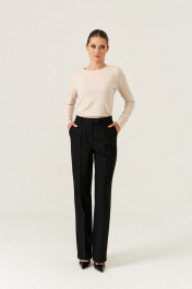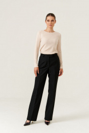 Брюки женские прямые из поливискозной ткани для повседневной носки. Верхний срез брюк обработан притачным поясом, застежка на один крючок, а также имеется застежка на тесьму-молнию в среднем шве брюк. В брюках имеются шлевки, что дает возможность носить их под ремень. Задняя часть брюк имеет две талиевые вытачки, а также два прорезных кармана в рамку с двумя обтачками. В брюках расположен в боковом шве карман с подкройным бочком. Отличный вариант брюк в классическом черном цвете, которые будут гармонично смотреться с любыми изделиями. В данных брюках вам будет очень комфортно и тепло за счет имеющегося начеса. Отличные базовые брюки в холодную погоду. 44 Брюки: Высота посадки - 29,5см, Длина брюк без пояса - 108см, Длина по внутреннему шву - 83см, Ширина брючин сверху - 64см, Обхват брюк по низу - 46см, Ширина по бедрам - 48,5см, Ширина по талии - 35,5см; 50 Брюки: Высота посадки - 31см, Длина брюк без пояса - 108,5см, Длина по внутреннему шву - 83см, Ширина брючин сверху - 70см, Обхват брюк по низу - 47,5см, Ширина по бедрам - 54,5см, Ширина по талии - 42см; 52 Брюки: Высота посадки - 31,5см, Длина брюк без пояса - 108,5см, Длина по внутреннему шву - 83см, Ширина брючин сверху - 72см, Обхват брюк по низу - 48см, Ширина по бедрам - 56,5см, Ширина по талии - 45см; 54 Брюки: Высота посадки - 32см, Длина брюк без пояса - 109см, Длина по внутреннему шву - 83см, Ширина брючин сверху - 74см, Обхват брюк по низу - 49см, Ширина по бедрам - 58,5см, Ширина по талии - 47см; 56 Брюки: Высота посадки - 32см, Длина брюк без пояса - 109см, Длина по внутреннему шву - 83см, Ширина брючин сверху - 76см, Обхват брюк по низу - 49,5см, Ширина по бедрам - 60,5см, Ширина по талии - 49см;