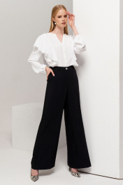 Брюки широкие с высокой посадкой из трикотажа для офиса Панда 113460w черный