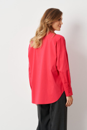 Блузка женская из хлопковой ткани. Элегантная хлопковая блуза порадует своей мягкостью и неприхотливым уходом. В состав также входит хлопок и полиэстер, благодаря которым она не стесняет в движении, выдерживает многократные стирки и глажку. Блузка офисная свободного кроя со спущенной линией плеча. Перед с воротником-стойкой и V-образным вырезом, подчеркнутым блестящими пуговицами на центральной застежке. Блузка летняя женская украшает аккуратный закругленный низ, разрезы в боковом шве и удлиненная спинка с пришивной кокеткой и складкой. Это обеспечивает идеальную посадку на плечах. Однотонная рубашка-блузка с рукавами длиной 3/4 на манжетах представлена в нескольких расцветках. Блузка красного цвета сочетается с различными вещами. Она разнообразит ваш повседневный гардероб, деловые и праздничные образы. Блузка на пуговицах женская универсальна, ее можно носить и зимой, и летом. Оверсайз блузка подойдет для работы и отдыха. 44 Блузка: Длина изделия по спинке - 71,5см, Длина переда от высшей плечевой точки до низа - 66см, Длина рукава - 45см, Ширина плеча - 27,2см, Ширина по груди - 59см, Ширина по низу - 61,5см, Ширина рукава вверху - 21,5см; 46 Блузка: Длина изделия по спинке - 71,5см, Длина переда от высшей плечевой точки до низа - 66см, Длина рукава - 45см, Ширина плеча - 27,6см, Ширина по груди - 61см, Ширина по низу - 63,5см, Ширина рукава вверху - 22,1см;