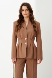 Жакет женский из поливискозной ткани цвета капучино. Стильный жакет полуприлегающего силуэта, выполненный из качественной поливискозной ткани, идеально подходит для повседневной носки. Модель застегивается по центру на обметанные петли и пуговицы, что обеспечивает удобство и классический вид. Перед жакета украшен защипами по талии и плечевой вытачкой, а боковые детали (бочок) создают аккуратный силуэт. Спинка с средним швом дополнена защипами по талии для дополнительной посадки. V-образная горловина обработана подбортом — эта деталь подчёркивает элегантность модели. Длинные втачные рукава делают жакет универсальным вариантом для разных сезонов. Жакет выполнен на поливискозной подкладке для комфортного ношения. 44 Жакет: Длина изделия по спинке - 66см, Длина рукава - 62см, Ширина плеча - 14.7см, Ширина по груди - 52см, Ширина по низу - 68см, Ширина по талии - 41см, Ширина рукава - 18см, Ширина рукава внизу - 13.5см; 46 Жакет: Длина изделия по спинке - 66см, Длина рукава - 62см, Ширина плеча - 15см, Ширина по груди - 54см, Ширина по низу - 70см, Ширина по талии - 43см, Ширина рукава - 19см, Ширина рукава внизу - 13.7см; 48 Жакет: Длина изделия по спинке - 66см, Длина рукава - 62см, Ширина плеча - 15.2см, Ширина по груди - 56см, Ширина по низу - 72см, Ширина по талии - 45см, Ширина рукава - 20см, Ширина рукава внизу - 14см; 50 Жакет: Длина изделия по спинке - 66см, Длина рукава - 62см, Ширина плеча - 15.5см, Ширина по груди - 58см, Ширина по низу - 74см, Ширина по талии - 47см, Ширина рукава - 21см, Ширина рукава внизу - 14.3см; 52 Жакет: Длина изделия по спинке - 66см, Длина рукава - 62см, Ширина плеча - 15.7см, Ширина по груди - 60см, Ширина по низу - 76см, Ширина по талии - 49см, Ширина рукава - 22см, Ширина рукава внизу - 14.6см;