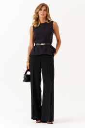Женская блузка из поливискозной ткани создана для тех, кто ценит комфорт и стиль в повседневной одежде. Модель выполнена в классическом полуприлегающем силуэте с отрезной линией по талии, что позволяет подчеркнуть фигуру, сохраняя при этом свободу движений. Верхняя часть переда украшена двумя аккуратными рельефными швами, идущими от проймы до линии талии, которые придают изделию изящную структуру и визуально стройнят. Нижняя часть переда дополнена двумя рельефами, создающими лёгкий объем и интересный дизайн. Спинка блузки также оформлена несколькими рельефами: два из них начинаются от проймы в верхней части, а ещё два – в нижней, что помогает модели хорошо сидеть по фигуре и сохранять форму. По центру спинки расположен средний шов со скрытой потайной молнией, благодаря которой блузку удобно надевать и снимать, не нарушая плавность силуэта. Расширенная горловина придаёт образу элегантность и свободу, обеспечивая комфорт даже в тёплую погоду, а отсутствие рукавов делает модель лёгкой и универсальной для сочетания с различными элементами гардероба. Особой выразительности блузке придаёт насыщенный черный оттенок, который отлично вписывается как в повседневные, так и в более яркие, стильные образы. Благодаря своему грамотному крою и качественному материалу из поливискозы, эта блузка станет незаменимой вещью в вашем гардеробе, сочетая в себе практичность и привлекательный внешний вид. 42 44 46 48 50
