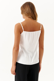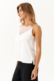 Женская блузка из струящейся ткани создана для комфорта и элегантности в повседневной носке. Модель прямого силуэта отличается лёгкостью и воздушностью благодаря мягкому материалу, который свободно струится по телу. Перед блузки изысканно украшен притачным кружевом с рельефным швом, придающим изделию особую изящность и женственность. Блузка выполнена на тонких бретелях, что делает её идеальным выбором для тёплой погоды или многослойного образа. Небольшие разрезы в боковых швах добавляют модели лёгкости и свободы движений, а молочный цвет придаёт внешнему виду свежесть и нежность, прекрасно подчёркивая достоинства фигуры и сочетается с широким спектром других оттенков в гардеробе. Эта блузка станет универсальным и стильным дополнением в вашем гардеробе, добавляя утончённость и комфорт в повседневные ансамбли. 46 Блузка: Длина изделия от высшей плечевой точки до низа - 56см, Длина изделия по спинке - 46см, Ширина по груди - 48см, Ширина по низу - 54см; 48 Блузка: Длина изделия от высшей плечевой точки до низа - 57см, Длина изделия по спинке - 46,5см, Ширина по груди - 50см, Ширина по низу - 56см; 50 Блузка: Длина изделия от высшей плечевой точки до низа - 58см, Длина изделия по спинке - 46,5см, Ширина по груди - 52см, Ширина по низу - 58см; 52 Блузка: Длина изделия от высшей плечевой точки до низа - 59см, Длина изделия по спинке - 47см, Ширина по груди - 54см, Ширина по низу - 60см;