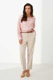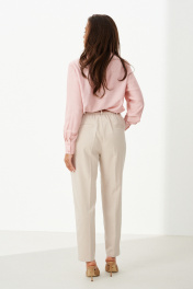 Данные женские брюки выполнены из мягкой вискозной ткани, что обеспечивает приятное ощущение и комфорт при носке. Верхний срез брюк оформлен притачным поясом, дополненным вставкой на резинке в задней и боковых частях, что позволяет добиться идеальной посадки и свободы движений. В задней части брюк расположены две талиевые вытачки, придающие форму и подчёркивающие линию талии. Задние карманы с листочками добавляют изделию эстетическую завершенность и функциональность, а боковой шов с карманом с подкройным бочком обеспечивает дополнительную практичность. Брюки заужены к низу, создавая современный и стройный силуэт. Застежка выполнена на крючок и молнию, расположенные в среднем шве, что обеспечивает удобство и надежность в использовании. В комплект входит пояс, который можно использовать для дополнения образа или для дополнительной регулировки посадки. Цвет брюк — бежевый, универсальный и легко сочетаемый с другими предметами гардероба, делая их подходящим вариантом для повседневных и деловых образов. 50 Брюки: Высота посадки - 29см, Длина брюк с поясом - 103см, Длина по шаговому шву - 72.3см, Ширина по бедрам - 58см, Ширина по низу - 19.5см, Ширина по талии - 42см; 52 Брюки: Высота посадки - 29см, Длина брюк с поясом - 103см, Длина по шаговому шву - 72.2см, Ширина по бедрам - 60см, Ширина по низу - 19.7см, Ширина по талии - 44см; 54 Брюки: Высота посадки - 29.5см, Длина брюк с поясом - 103см, Длина по шаговому шву - 71.8см, Ширина по бедрам - 62см, Ширина по низу - 20см, Ширина по талии - 46см; 56 Брюки: Высота посадки - 29.5см, Длина брюк с поясом - 103см, Длина по шаговому шву - 71.5см, Ширина по бедрам - 64см, Ширина по низу - 20.4см, Ширина по талии - 48см;