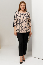 Блузка нарядная женское создаст соответствующее настроение и подарит комфорт на протяжкении дня. Фасон блузки превосходно садится по фигуре, визуально стройнит и дарит образу женственность. Вы сможете носить нарядную блузку на работу, встречу с подругами, в кафе или в офис. Сдержанная расцветка в светлых тонах и ненавязчивая черная вставка подойдкт для любого повода. Блузка хорошо сочетается с различной обувью на каблуке – босоножками и туфлями-лодочками. Вы можете купить нарядную блузку для себя или в подарок маме, сестре, подруге.Блузка для полных женщин способна изящно маскировать несовершенства фигуры. Она не облегает силуэт, скрывая лишние сантиметры в области живота и талии. С паре ней хорошо смотрятся брюки, юбка-карандаш, джинсы. Изделие привлекает оригинальным дизайном: спереди - принтованное полотно, по спинке - однотонное. Этот эффект визуально скрадывает размер. Рукав 3/4 создан с отворотом, вырез горловины – округлый. Блузка из вискозы вызывает приятные ощущения при прикосновении к коже, не парит даже в жаркие дни. Вы можете заказать блузку женскую нарядную свободного кроя в размерах 48-56 для пополнения весенне-летнего гардероба. 48 Блузка: Длина изделия - 68см, Длина рукава - 24см, Ширина плеча - 25,5см, Ширина по груди - 59см, Ширина по низу - 59см, Ширина рукава - 19см;