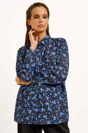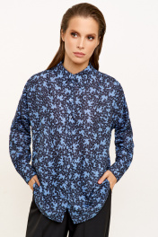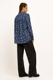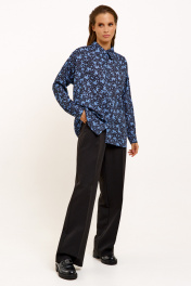 Голубая и черная блузка с длинным рукавом для офиса Панда 130740w черно-синий