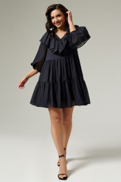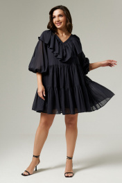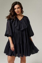 Летнее хлопковое платье со V-образным вырезом и рюшей Панда 135480w черный
