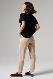 Брюки женские прямые из смесовой ткани для повседневной носки. Верхний срез брюк обработан притачным поясом со вставкой на резинке в боковой и задней части брюк, застежка на одну обметанную петлю и одну пуговицу, а также имеется застежка на тесьму-молнию в среднем шве брюк. Задняя часть брюк с кокеткой и двумя накладными карманами. В брюках расположен в боковом шве карман с подкройным бочком. Отличный классический вариант брюк, которые будут гармонично смотреться под любые изделия. 42 Брюки: Высота посадки - 26.5см, Длина брюк с поясом - 100см, Длина по внутреннему шву - 71см, Ширина брючин сверху - 57см, Ширина брючин по низу - 27см, Ширина по бедрам - 47см, Ширина по талии - 35см; 44 Брюки: Высота посадки - 27см, Длина брюк с поясом - 100см, Длина по внутреннему шву - 71см, Ширина брючин сверху - 59см, Ширина брючин по низу - 28см, Ширина по бедрам - 49см, Ширина по талии - 37см;