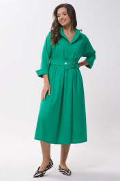 Платье повседневное из хлопка с поясом и прорезными карманами Панда 141883w зеленый