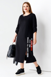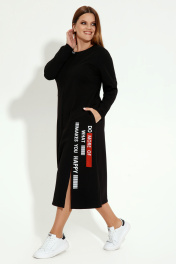 Платье женское в спортивном стиле – удобная повседневная одежда, которая поможет вам всегда выглядеть привлекательно. В прохладную погоду его можно носить с курткой, жакетом, кардиганом, полупальто. Платье оверсайз женское создано в свободном крое, поэтому не обтягивает фигуру. Модель изящно замаскирует несовершенства вашего силуэта. Надевая платье трикотажное женское, вы можете быть уверены, что лишние объемы в районе живота и бедер будут надежно скрыты от посторонних глаз. Платье женское больших размеров скроено с округлой горловиной и оригинально собранными рукавами длиной ¾. Платье длинное красиво приоткроет ваши щиколотки, а высокий разрез покажет стройность ног. Мотивирующая надпись на юбке в красном и белом цветах поднимет настроение вам и окружающим. Черное платье женское отлично подходит для прогулок, встреч с друзьями, активного времяпрепровождения. Оно достойно пополнит ваш демисезонный гардероб. 50 Платье: Длина изделия - 117см, Длина рукава - 61см, Ширина плеча - 10,5см, Ширина по бедрам - 58см, Ширина по груди - 52см, Ширина рукава - 18,5см;