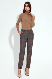"Брюки женские - важный элемент повседневного гардероба, универсальный и уместный для походов на работу, учебу, деловую встречу. Лаконичная модель хорошо смотрится с топом, блузкой, майкой, гольфом, водолазкой, свитером, вашей любимой верхней одеждой, обувью на каблуках или низком ходу. Модные в этом сезоне брюки женские в клетку скроены в стиле вечной классики: прямой, чуть зауженный книзу фасон, средняя посадка, стрелки, застежка-молния и пуговицы на отрезном поясе, прорезные карманы в боковых швах, шлевки для ремня. Укороченные брюки женские оригинально выглядят, благодаря притачным манжетам с маленьким разрезом, которые размещены по линии низа. Брюки женские зауженные визуально сделают ваши ножки стройнее и длиннее, а рост - выше. Брюки женские классика изготовлены из поливискозной мягкой и плотной ткани, отлично сохраняющей форму и цвет при активной носке и частых стирках. Вы можете купить брюки женские трикотажные классические для создания стильных образов." 42 Брюки: Высота посадки - 23см, Длина брюк с поясом - 99см, Длина по внутреннему шву - 75см, Ширина брючин сверху - 59.5см, Обхват брюк по низу - 34.5см, Ширина по бедрам - 46.5см, Ширина по талии - 34см;