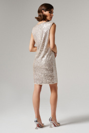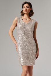 Нарядное платье из пайеток с плечевыми накладками Панда 173380w бежевый