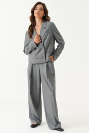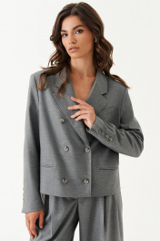 Жакет женский из смесовой ткани для повседневной носки. Жакет полуприлегающего силуэта. Жакет двубортный, застежка на две обметанные петли и две пуговицы. Перед имеет нагрудный карман с листочкой. По переду имеется прорезной карман с двумя обтачками. Спинка со средним швом. Жакет имеет отрезной бочок. Горловина обработана пиджачным воротником. Рукава двухшовные с шлицей по низу рукава, на шлице имеются четыре пуговицы. Жакет полностью на поливискозной подкладке. Данный жакет станет отличным дополнением к любому гардеробу. И обязательно осчастливит его обладательницу своим прекрасным фасоном. 50 Жакет: Длина изделия - 58см, Длина рукава - 62см, Ширина плеча - 13.2см, Ширина по груди - 60см, Ширина по низу - 60см, Ширина рукава - 20.1см;