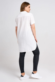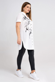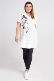 Элегантная длинная блузка женская с цветочным принтом - красивая вещь, которая по достоинству займет место в вашем гардеробе. Черно-белая лилия на тонком стебле, тянущимся вверх, визуально стройнит фигуру. Белая блузка женская больших размеров с V-образным вырезом формирует изящный силуэт. Отложной воротник придает более строгий вид, который уместен в офисном гардеробе. Удлиненная блузка женская изготовлена из натуральной хлопковой ткани с эффектом жатки. Рубашка-блузка женская белая застегивается спереди на пуговицы, пришитые к планке. Спереди и сзади закругленный низ. Спинка присборенная у отрезной облегающей кокетки и боковые разрезы делают блузку свободной и не стесняющей движения. Блузка женская большого размера с коротким рукавом на притачной манжете подойдет для повседневного гардероба. Ее можно носить с джинсами, облегающими скинни и юбками-миди. Блузка белая женская содержит в составе 100% хлопок, поэтому проста в уходе и комфортна в носке. 50 Блузка: Длина изделия - 88.5см, Длина рукава - 22см, Ширина плеча - 12.5см, Ширина по бедрам - 62см, Ширина по груди - 57см, Ширина рукава - 20см;