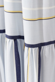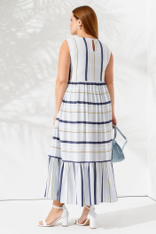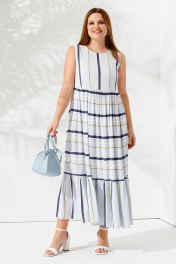 Красивое летнее женское платье подойдет для повседневной носки и особых случаев. В его дизайне использованы разноцветные вертикальные и горизонтальные полосы разной толщины. Их визуальный эффект позволяет скорректировать фигуру и сделать акцент на бедрах. Платье женское длинное с укороченным отрезным лифом в вертикальную полоску. Его дизайн перекликается с рисунком на волане, пришитому к подолу. Юбка собрана в мелкую сборку под линией реза лифа. Платье без рукавов с классическим круглым вырезом горловины. Легкое платье женское изготовлено из мягкой вискозы, которая хорошо пропускает воздух и обеспечивает комфортную носку в жаркую погоду. Женский сарафан визуально увеличивает длину ног за счет завышенной линии талии. Под юбкой свободного кроя вы сможете скрыть неидеальную талию и бока. Декорированное платье не нуждается в аксессуарах. Его можно носить с босоножками и обувью на каблуке. Вы можете купить платье женское оверсайз для прогулок по городу и летних праздников. 42 Платье: Длина изделия - 127см, Ширина плеча - 9см, Ширина по бедрам - 89см, Ширина по груди - 45см, Ширина по подрезу - 45см;