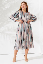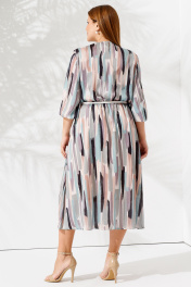 Стильное летнее платье с длинным рукавом и поясом Панда 87680w мультиколор