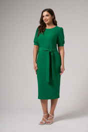 Миди платье из трикотажа с объемным поясом и рукавами Панда 89980w зеленый