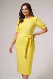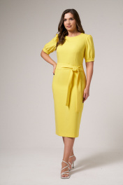 Миди платье трикотажное с объемным поясом и рукавом Панда 89980w желтый