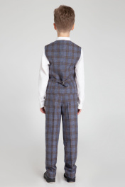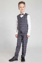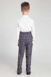 Классические брюки для мальчика. Брюки на талии, прямого силуэта, с притачным поясом. Брюки с застежкой на одну петлю и пуговицу на поясе и тесьму-молнию по переду. На внутренней части пояса имеются регуляторы. По поясу расположены шлевки. На передних частях расположены боковые карманы. На задних частях брюк обработаны по одной вытачке на каждой половине. На задних частях брюк имеется прорезной карман в рамку с застежкой на петлю и пуговицу. Передняя часть брюк на подкладке.