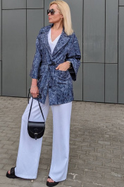Для современной женщины, мы предлагаем уникальный жакет с поясом. Это отличный вариант для повседневного или вечернего использования в летний и осенний периоды. Выполнен из легкого текстильного материала, что делает его очень комфортным и удобным в носке. Наш универсальный жакет подходит для любого случая: от деловой встречи до вечеринки. Модель полуприлегающий силуэта, немного приталенного кроя с двумя накладными кармнами и немного расклешенными рукавами. Легкий, удобный, практичный - это все о нем! Побалуйте себя этой незаменимой, стильной вещью и Вы по достоинству сможете оценить её уникальность!