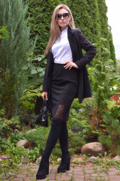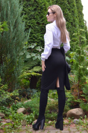 Юбка-карандаш из плотной трикотажной ткани со вставкой спереди из сетчатой ткани в горох, которая имитирует разрез.