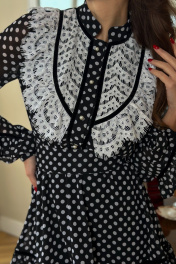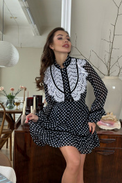Шифоновое платье с кружевной вставкой и отделкой бархатной тесьмой. Это не просто платье, это- произведение искусства! Обратите внимание на сложные детали: кружевная вставка на груди, воланы на рукавах и юбке, отделка бархатной лентой. Это платье можно рассматривать часами. Многие женщины обожают носить одежду в горошек. Красивый принт polka dot придает образам задорности и неотразимости. Поэтому вопрос о том будут ли модными платья в горошек в сезоне 2024-2025 беспокоит множество модниц. С уверенностью и облегчением можно сказать «да», великолепные платья с принтом горох остаются в списке модных трендов одежды 2024-2025 как для весны-лета, так и для осени-зимы. 42-ой размер; Ог 98 см , по талии в растянутом виде 81 см 44-ый размер; Ог 102 см , по талии в растянутом виде 85см 46-ой размер; Ог 106см , по талии в растянутом виде 89см 48-ой размер; Ог 110см , по талии в растянутом виде 93см