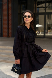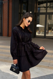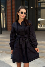 Черное платье из хлопка с кружевной отделкой Pavlova 174