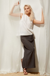Юбка летняя из льна в стиле casual PINA 3828 тёмно-серый