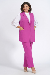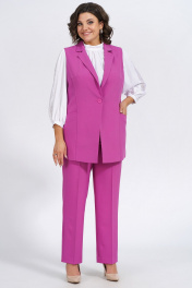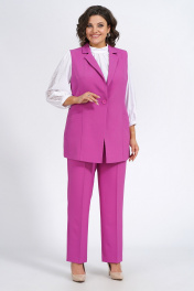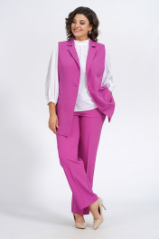 Деловой демисезонный комплект из жилета, блузки и брюк Пинск-Стиль 124 фуксия