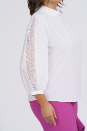 Комплект женский состоит из жилета блузки и брюк. Жилет прямого силуэта, удлиненный . Перед с рельефами, выходящими и з проймы изделия, из которых выходят нагрудные выточки. От рельефа в сторону бокового шва, расположен под углом карман с листочкой. Перед жилета на подкладке. Спинка с центральным швом. Воротник пиджачного типа. Застежка на петлю пуговицу. Борт жилета декоративно скошен.Длина по центру спинки 75см. Ширина по линии груди в 50р - 54см, 52р - 56см, в54р - 58см, в 56р - 60см. Ширина по линии бедер в 50р - 56см, в 52р - 58см в 54р - 60см, в 56р - 62см. Брюки свободного кроя, заужены к низу, на поясе. Пояс имеет центральную вставку, от срезов которой расположена эластичная тесьма. По центру переда брюк распологается застежка на тесьму молнию и петлю пуговицу. В подрезах передних половинках находятся карманы. Брюки со стрелками по передним и задним половинкам. Длина брюк по боковому срезу 107см с поясом. длина по шаговому 80см. Ширина пояса брюк (полуобхват, эластичная тесьма в свободном положении) в 50р - 38см, в 52р - 40см, в 54р - 42см, 56р. - 44см Ширина по линии бедер (полуобхват) в 50р - 54см, в 52р - 56см, в 54р - 58см, в 56р - 60см. Блузка свободного кроя, прямого силуэта. Перед со сборкой по горловине изделия. Спинка с центральным швом, вверху которого находиться застежка ввиде капельки, на петлю пуговицу. Рукав пышный, на манжете. В центре рукава находится кружево. Воротник – стойка фантазийной формы. Блузка с плечевыми накладками. Длина блузки по спинке 62см. длина рукава 52см. Ширина по линии груди в 50р - 54см, 52р - 56см, в54р - 58см, в 56р - 60см. Ширина по линии бедер в 50р - 56см, в 52р - 58см в 54р - 60см, в 56р - 62см.