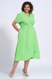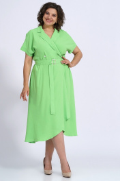 Платье деловое из текстиля с запашком и карманами Пинск-Стиль 150 салатовый