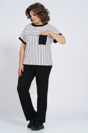 Костюм из трикотажа: футболка и брюки с капюшоном Пинск-Стиль 154 полосатый+черный - фото 1