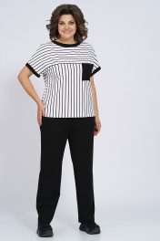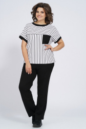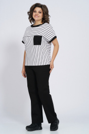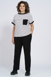 Костюм из трикотажа: футболка и брюки с капюшоном Пинск-Стиль 154 полосатый+черный